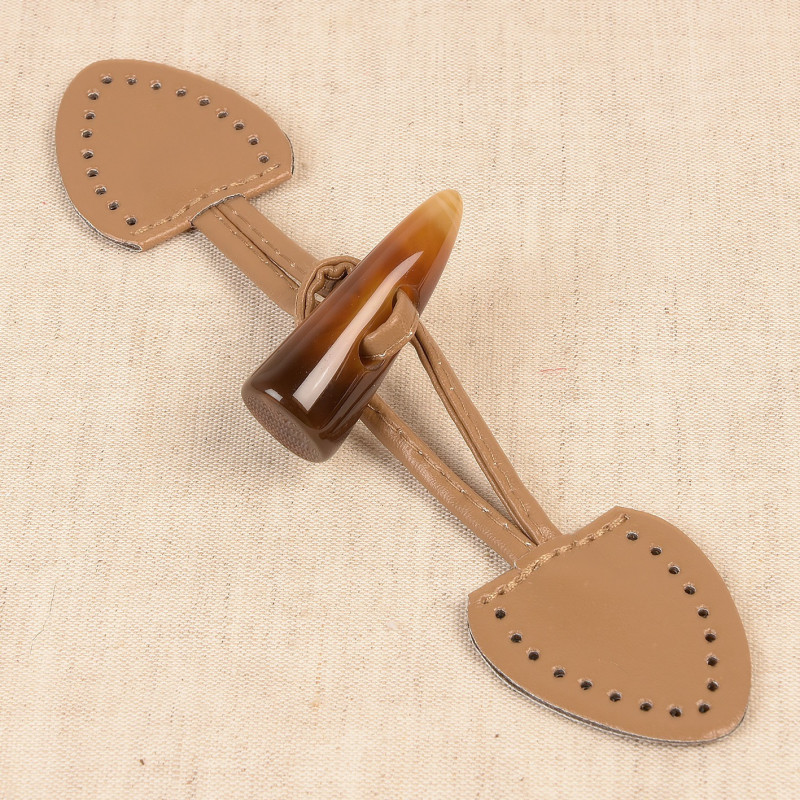 Brandenburg in the shape of a horn on a lasset and pre-flounded support in beige imitation leather. A perfect finish for your jacket, trench, coat, sailor, sweater ...