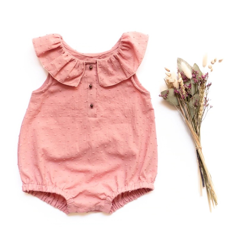 Sydney is a mixed baby pattern for baby. This pattern is offered with an opening to the crotch as well as a partial buttoning leg in front. It is available in a sleeveless version or long sleeves. The model finally offers multiple options: a collar at the level of the neck, a Claudine pass and an elastic option at the size.