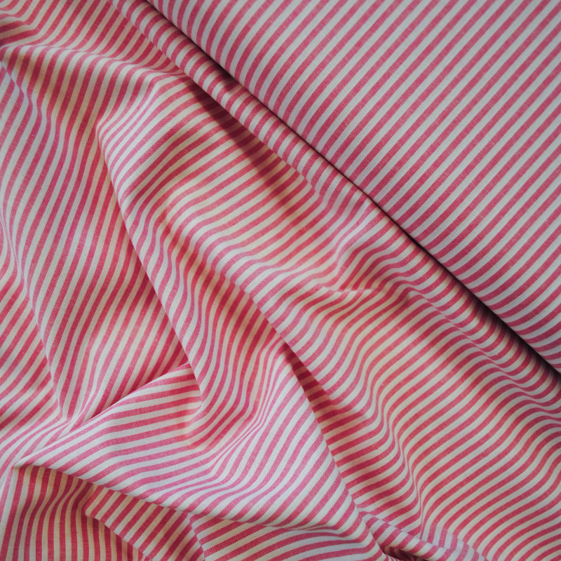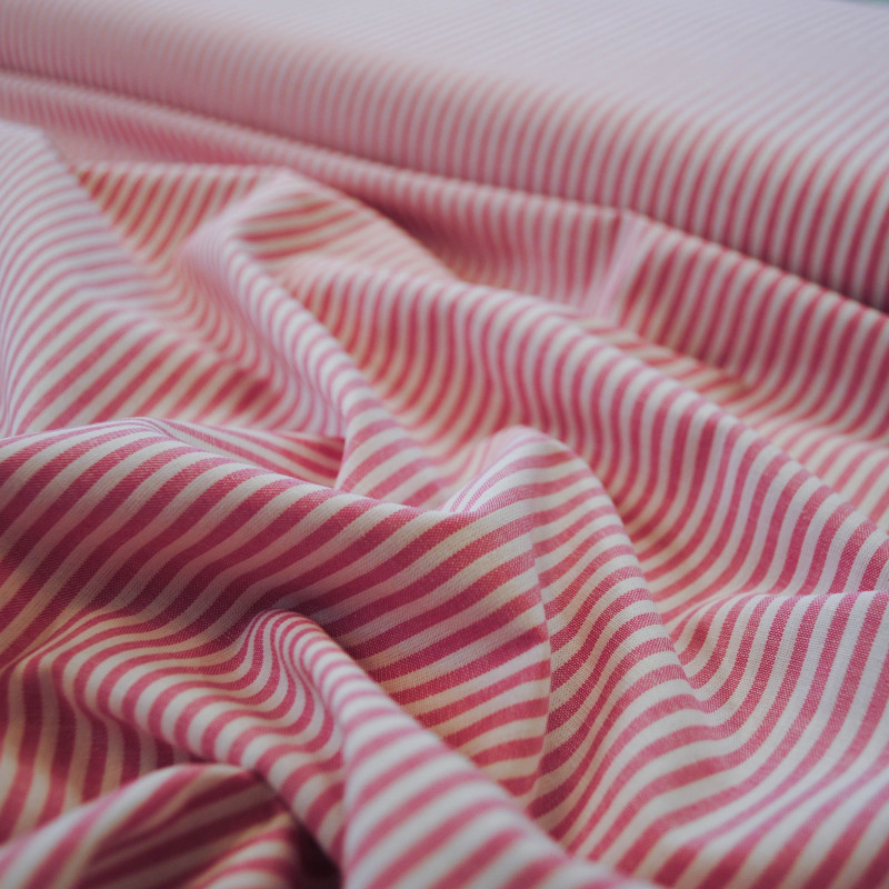 Oeko-tex cotton with a beautiful 145cm layer offering a fuchsia striped pattern on a white background. The fabric combines softness and structure, it will be perfectly suited to the seam of a top, a dress or a household linen.