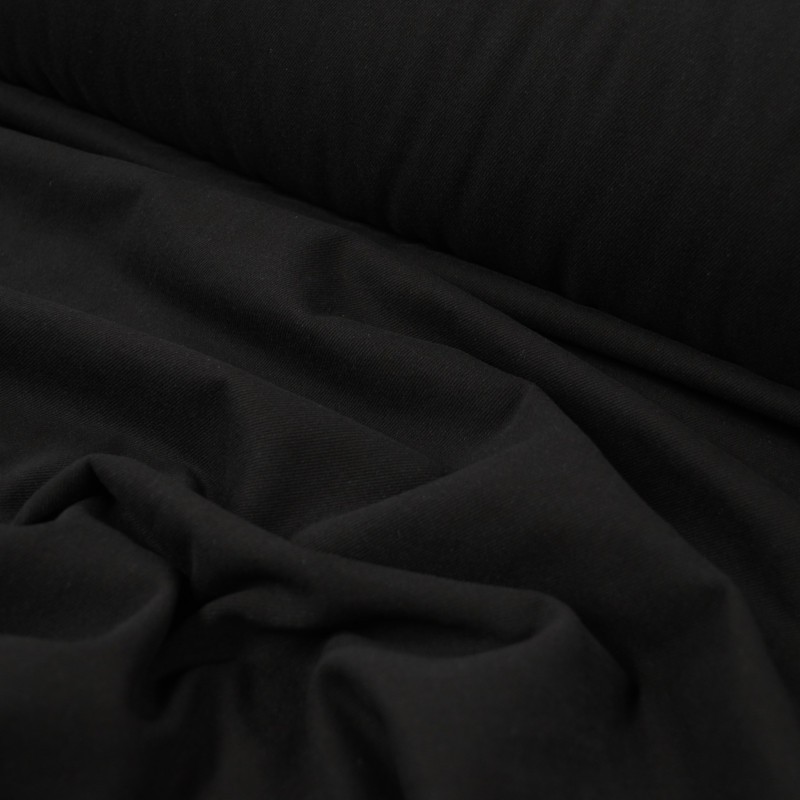 100% plain cotton jeans in black color with both a very beautiful width of 180cm and a weight of 320 grams. This beautiful denim will transform perfectly into pants, dresses, jumpsuits or even accessories.