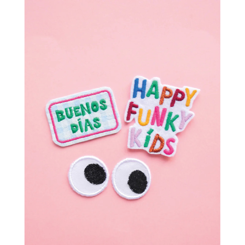 ✨ Iron-on patches with Buenos Dias motifs, Happy funky kids, 1 pair of eyes