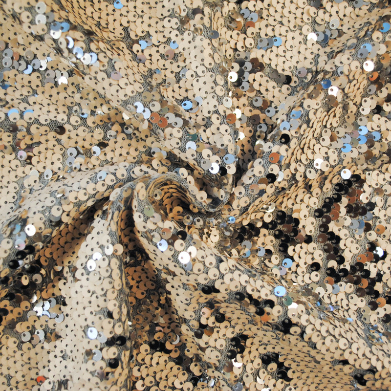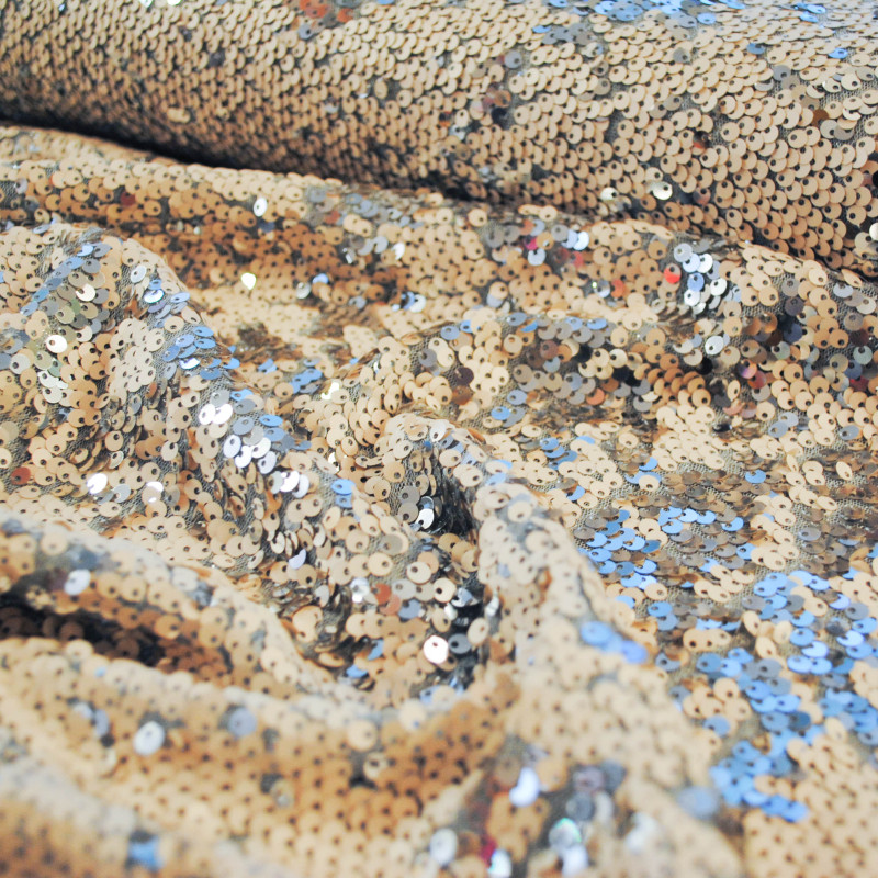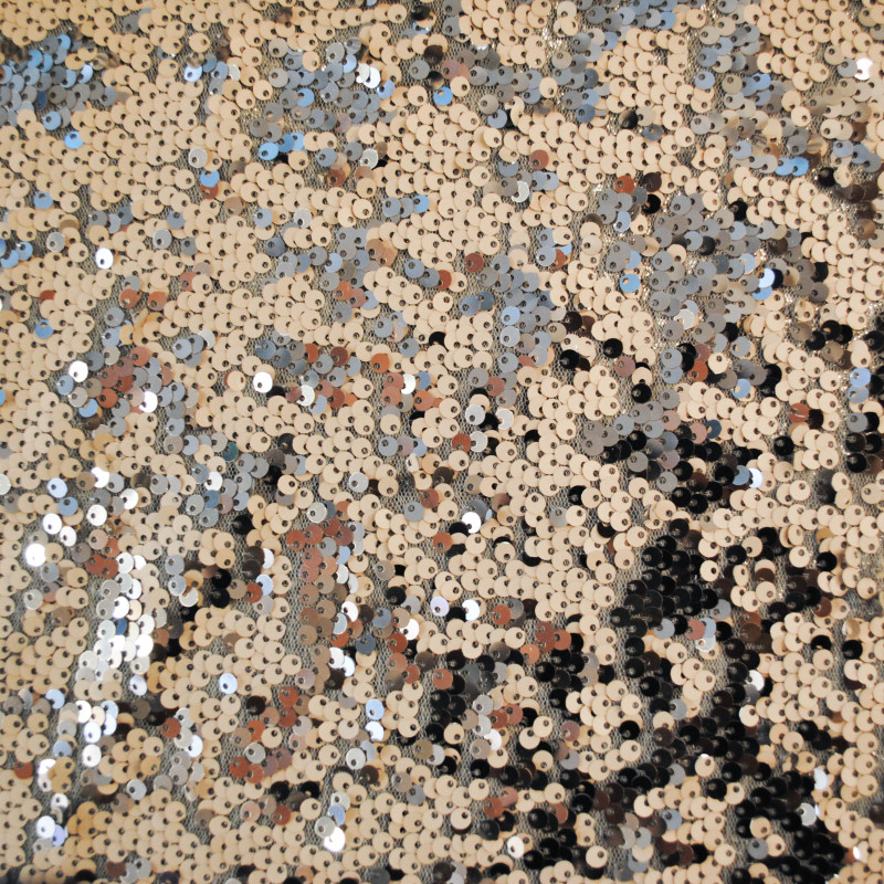 Fabric with a very beautiful density of sequins in silver/nude shades on tulle. Accompanied by a matching lining, the sequin is ideal for your outfit or party accessory.