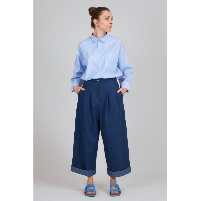 I'm Harmony, a high-sized pants with multiple lengths. I’m wide thanks to 2 flat folds in front, Italian pockets in front, and 2 pockets in the back. I open by a braguette and keep your waist thanks to a finished right belt with large passersby. I decline in short shorts, shorts to back, skirt panties, 7/8th trousers and extra-long pants. It is up to you to imagine the length that will best suit you.
