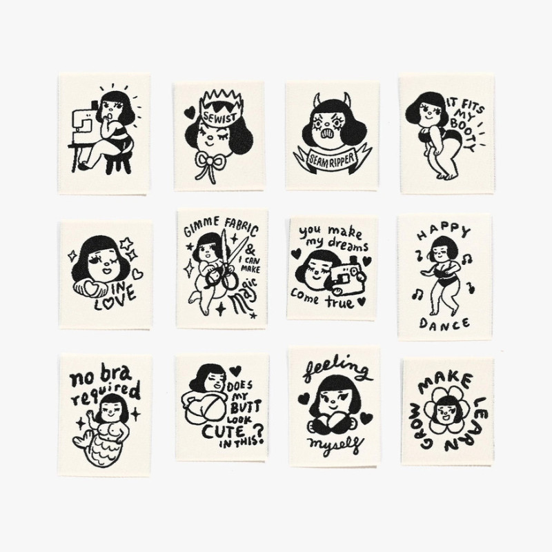 Each package contains 14 woven labels.