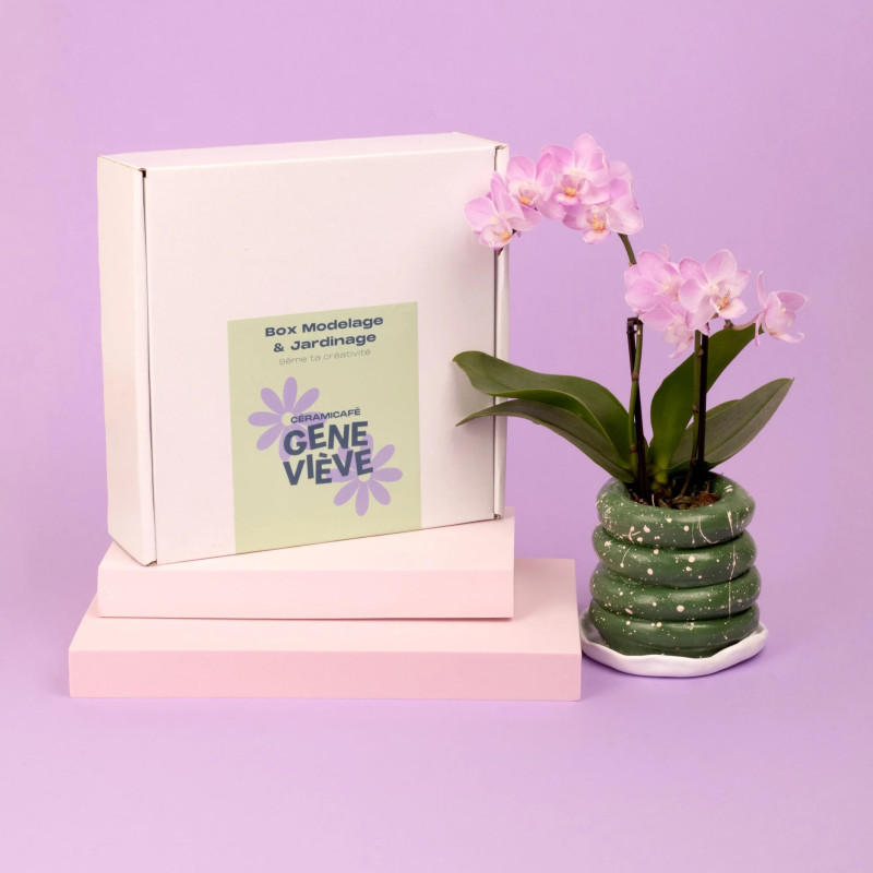 Avec la box jardinage du Céramicafé Geneviève, vous pourrez découvrir cette activité où vous voulez, quand vous voulez, et à votre rythme. Nous vous fournissons tout ce que vous avez besoin pour modeler votre pot de fleurs en argile et le décorer. Cette box ne nécessite pas de cuisson. Découvrez nos inspirations et laissez parler votre créativité, en suivant les étapes détaillées de la notice, ou en visionnant la vidéo tutoriel grâce au QR code fourni.