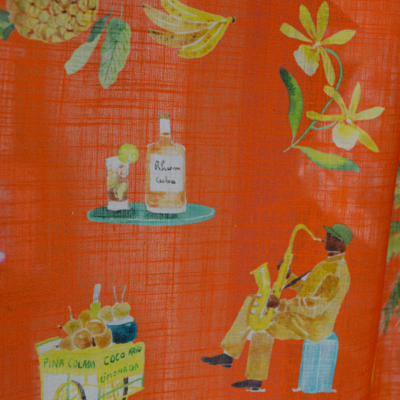 Havana est un joli coton tramé aspect lin de léger offrant un , une léger transparence tout en étant confortable pour une couture d'été ! Le motif signé @happy.watercolor vous transportera direction Cuba, en plein coeur de la Havane à travers ces différents panneaux.