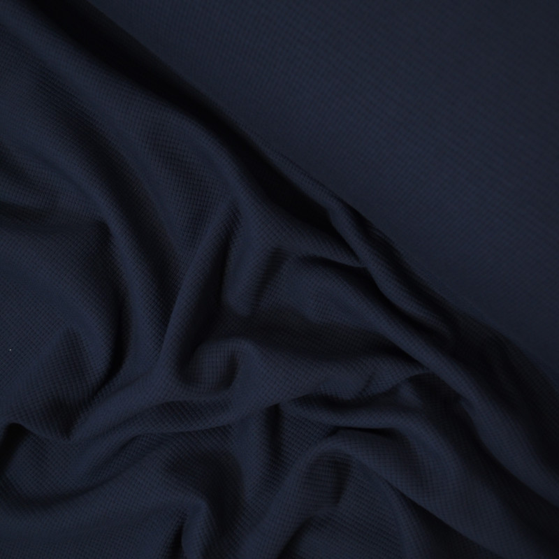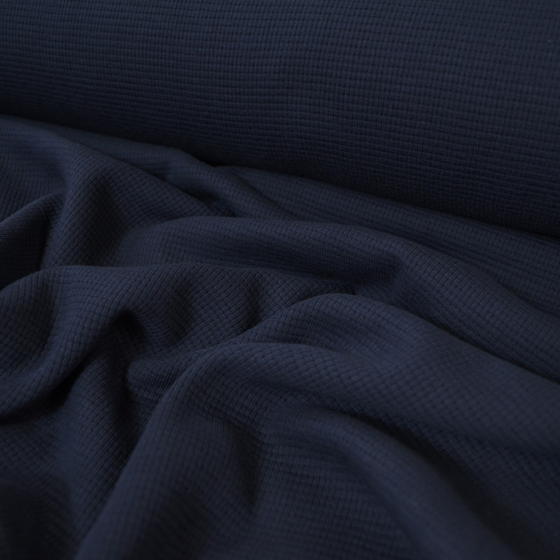Jersey 100% coton à l'aspect gaufré dans une couleur unie. Son joli tissage lui donne de l'élasticité dans les deux directions, majoritairement sur la laize / largeur. Un très beau tissu tant par sa souplesse, sa composition, son poids et sa fluidité. Idéal pour la couture d'une robe, d'un top, d'un pantalon ample.
