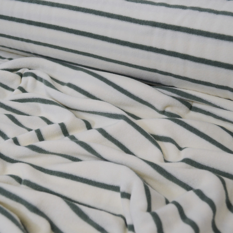 Jersey éponge à rayures - Ecru / Vert sauge
