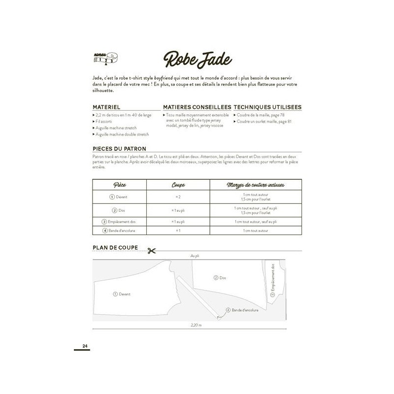 - 2 planches de patrons à taille réelle, en 8 tailles (du 34 au 48), marges de couture incluses.