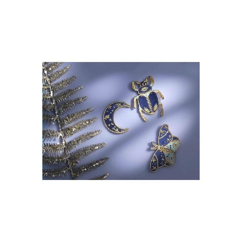 Cet écusson lunaire avec ces fins et précieux détails dorés sera le détail pour paufiner votre look de jour comme de nuit...