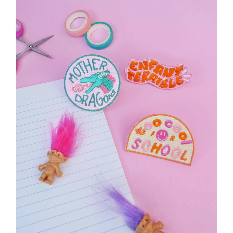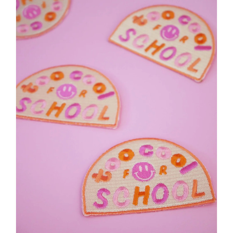 Écusson Too Cool for School 🎓 Vous êtes unique, et votre look aussi ! Avec notre écusson 100% Good Mood démarquez-vous dans la cour de récré ✨ N'attendez plus pour faire de votre monde un endroit plus coloré avec le patch "too cool for school = trop cool pour l'école"