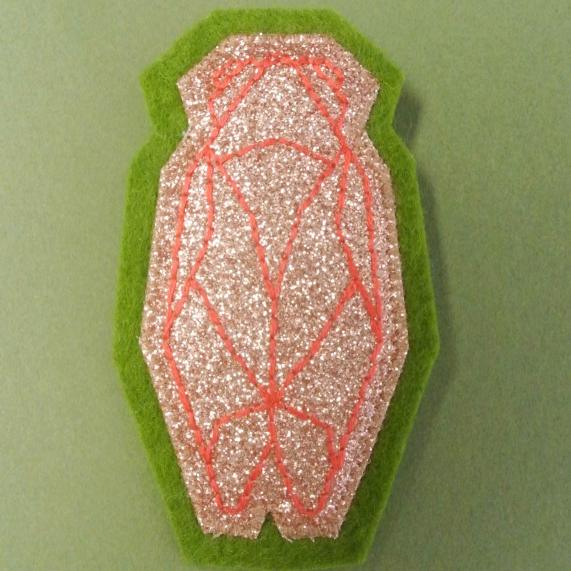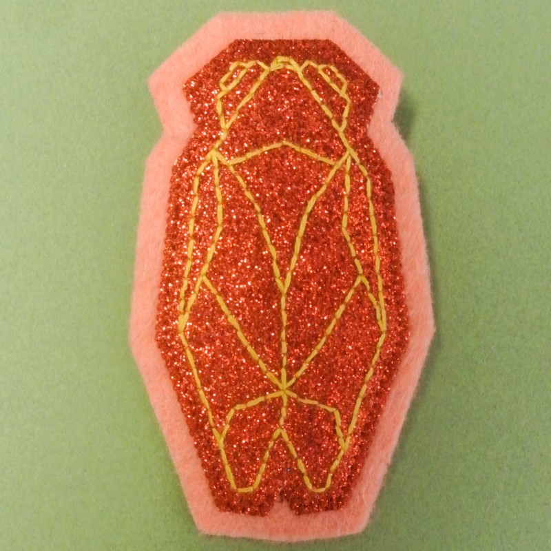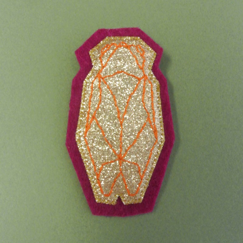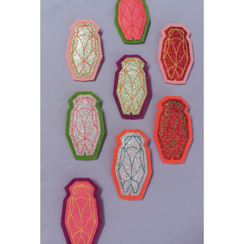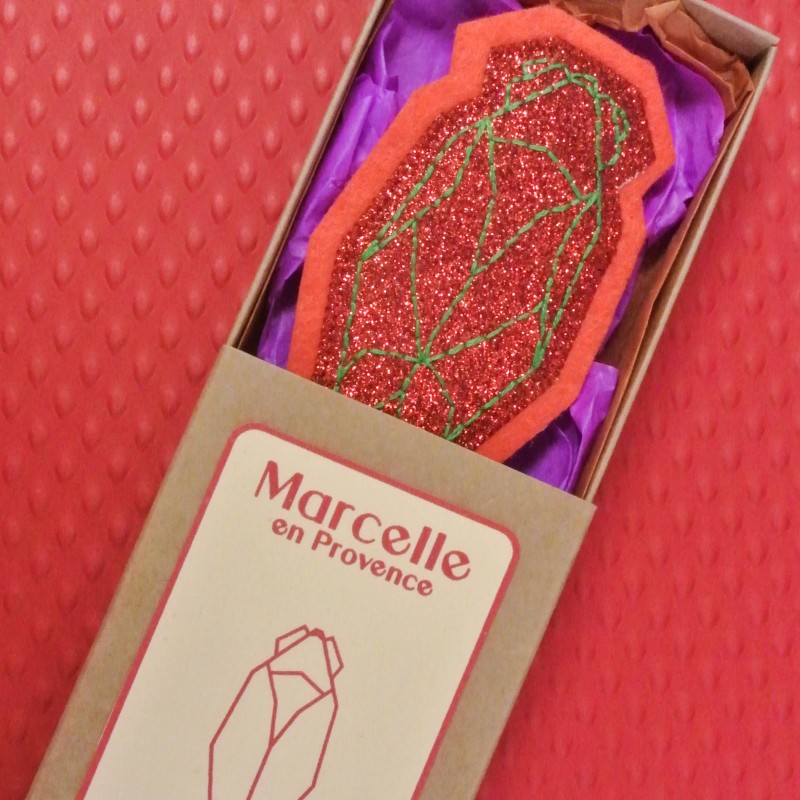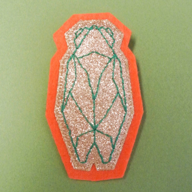 Broche brodée "Cigale" de Marcelle en Provence. Créées à Aix-en-Provence, les broches sont brodées à la main avec coeur, en toutes petites séries.