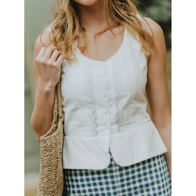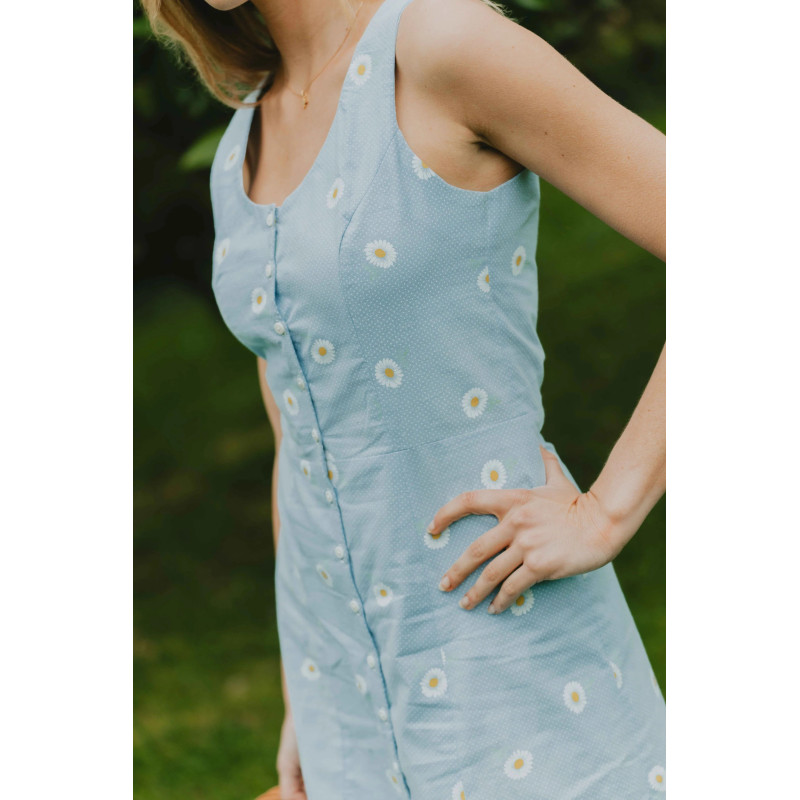 Delphine est un patron idéal pour revaloriser un rideau ou un drap vintage. Privilégiez un coton ou un lin fluide, avec suffisamment de tenue.