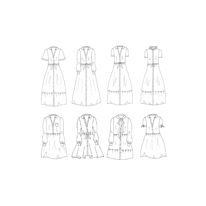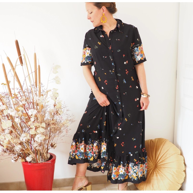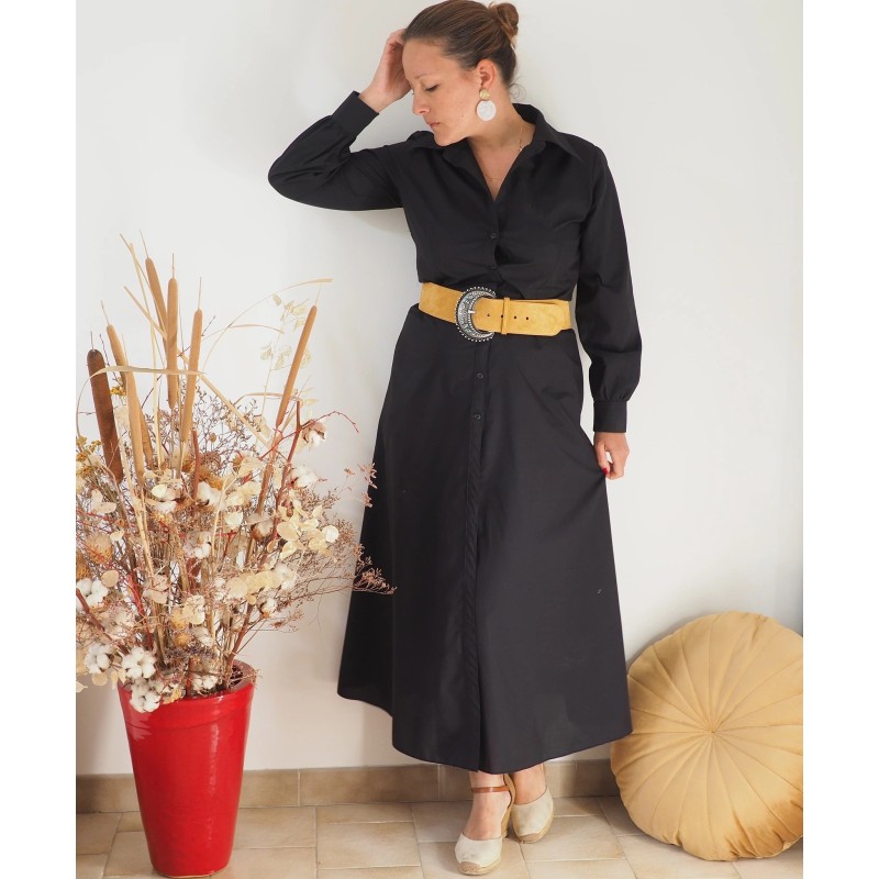 Version cintrée / jupe longue / manches longues / col chemise : 2,60 à 3,15m de tissu en 140 cm de laize