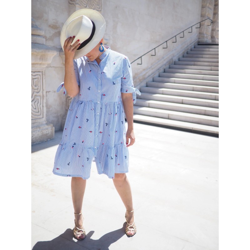 Version large / jupe courte / manches courtes / col chemise : 1,90 à 2m de tissu en 140 cm de laize