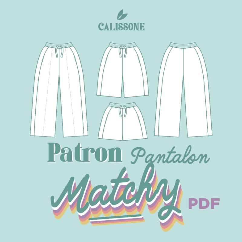 Matchy est un pantalon qui reprend les codes du street style, une coupe loose avec une jambe évasée, une taille élastiquée qui emboîte bien, et un empiécement pour un max de créativité !