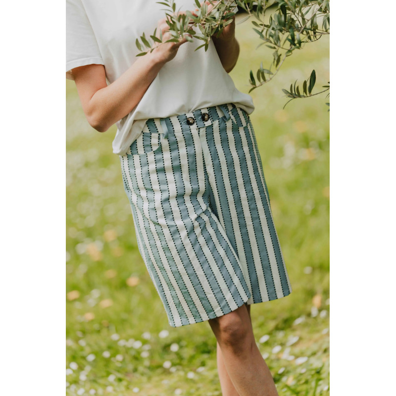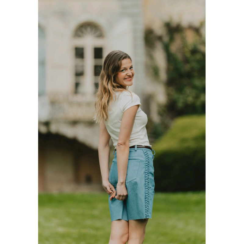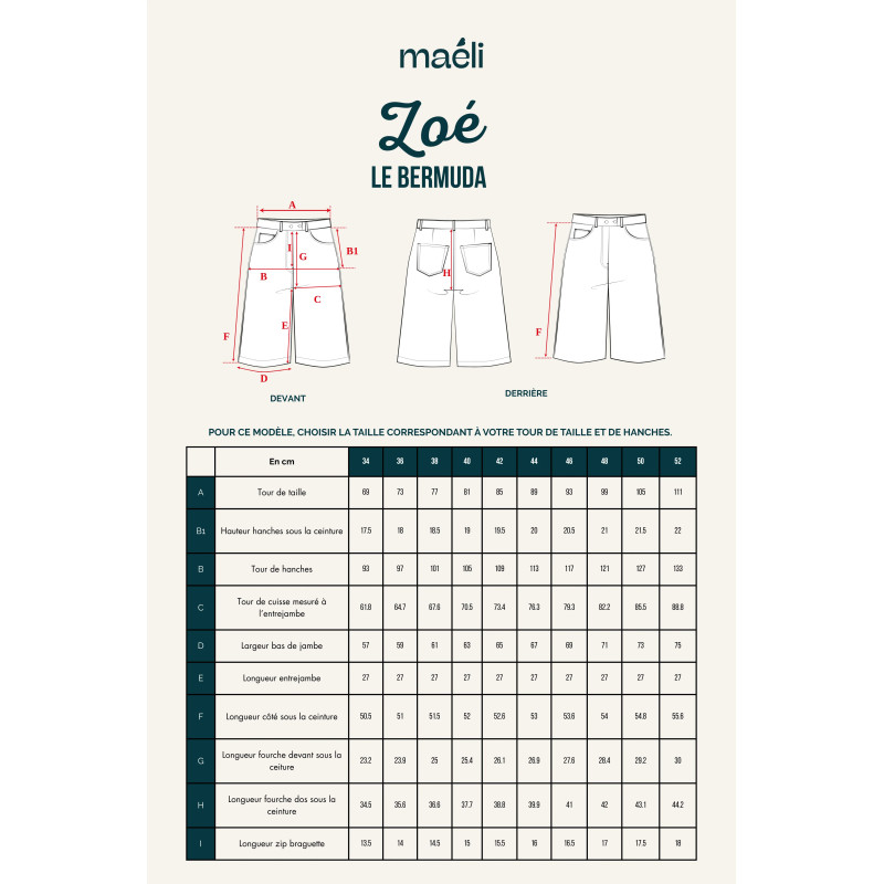 Découvrez le patron du short bermuda Zoé. Vous allez adorer sa coupe droite, pour un style estival à la fois cool et affirmé. Sa taille haute et sa longueur au-dessus du genou en font une pièce confortable et facile à porter au quotidien. C’est le bermuda qu’on enfile tout l’été, sans se poser de questions !