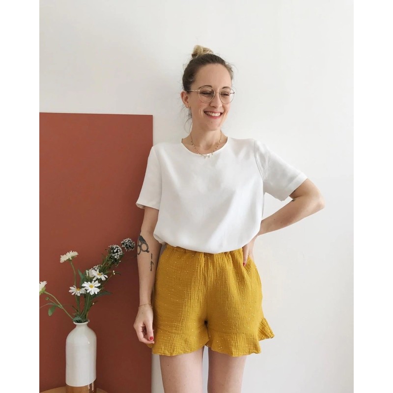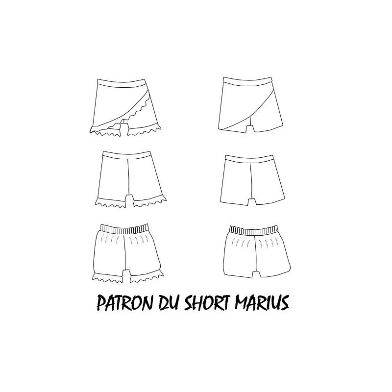 Avec la possibilité de mettre ou pas les froufrous devant, les froufrous dos et le froufrou surjupe, le short Marius, avec sa taille mi-haute, est déclinable en 8 versions. A cela, se rajoute la possibilité d’enlever la surjupe pour en faire un short classique ! Et même d’en faire une version casual, pouvant aller, selon le tissu utilisé, du vêtement de sport ou bas de pyjama. On peut aussi jouer sur la longueur du short dans le cas où les froufrous sont enlevés. Ainsi, Marius, ce n’est pas un simple short, mais la possibilité de faire avec un même patron pas moins de 12 vêtements différents !
