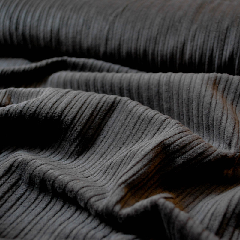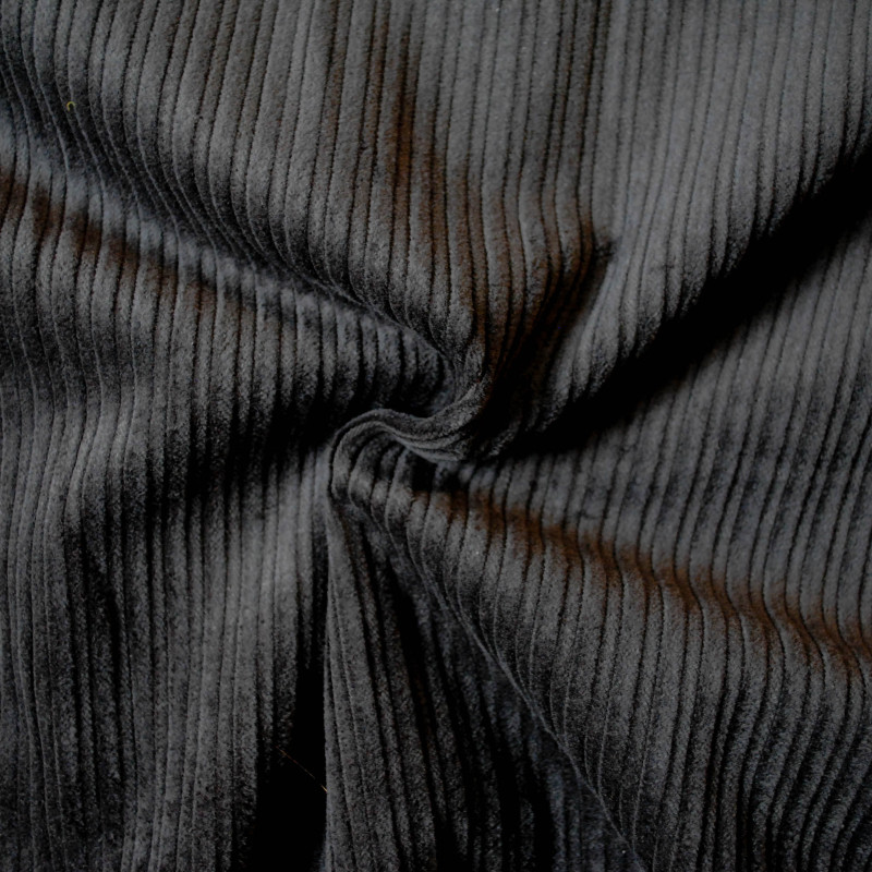 Velours corduroy 100% coton, décliné en couleur noir. Le tissus est doux et respirant, idéal pour la couture de vêtements élégants tels que des vestes, pantalons, jupes, combinaison...